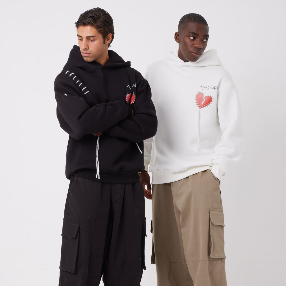 Felpa Broken Hearts – Asensyo Una felpa nera con cappuccio che parla senza alzare la...