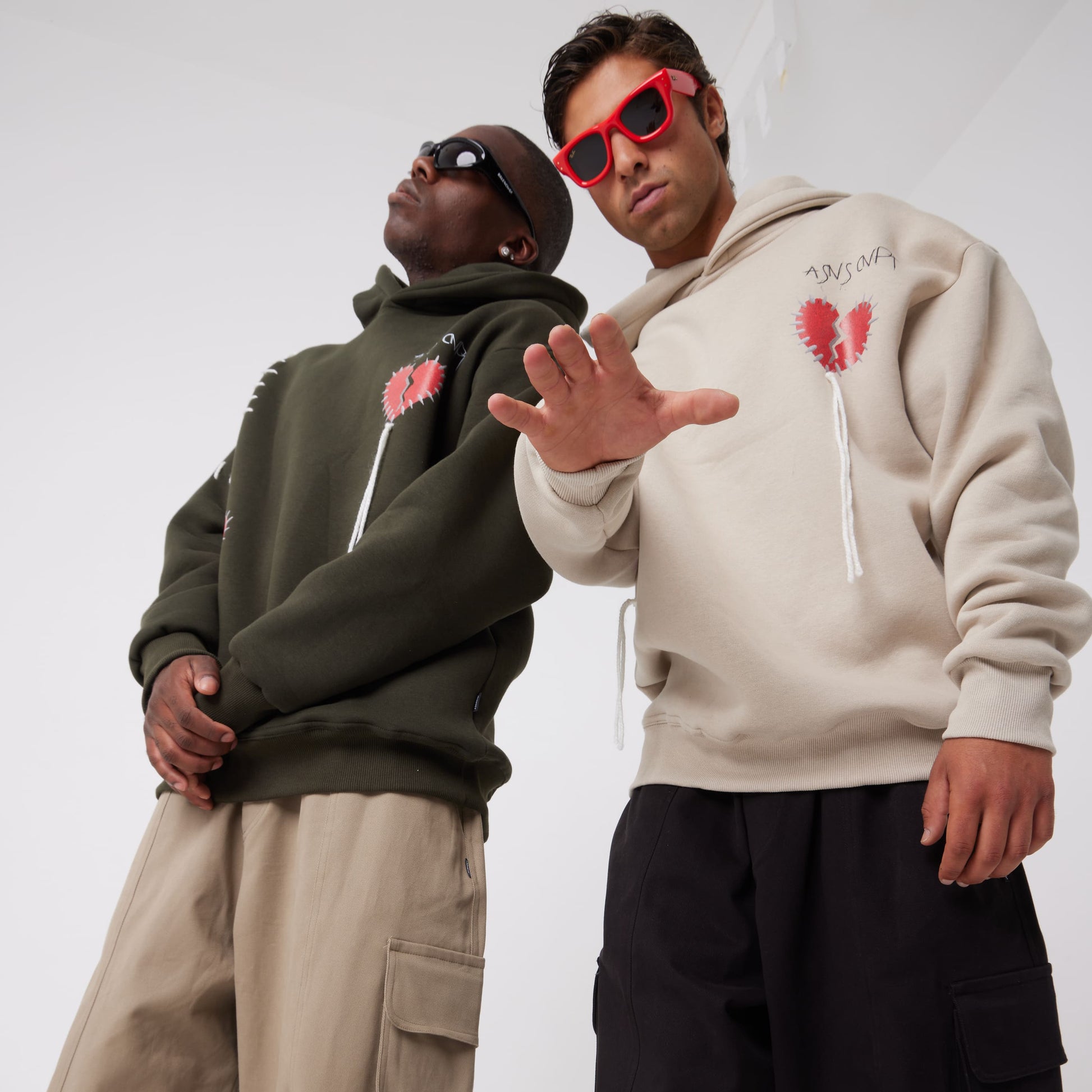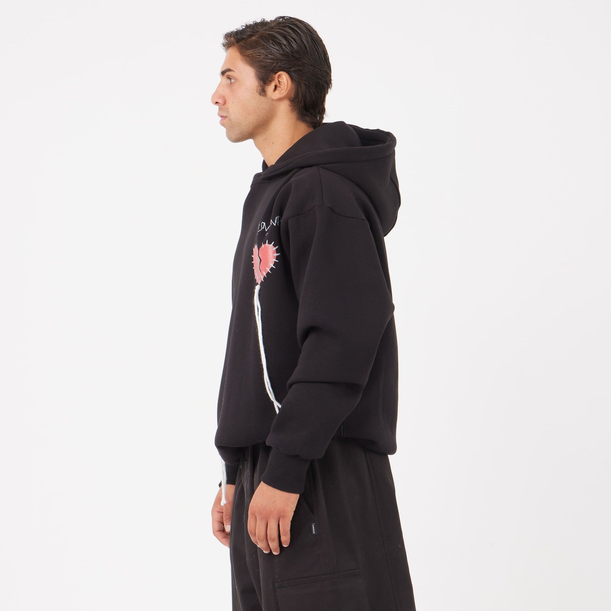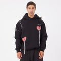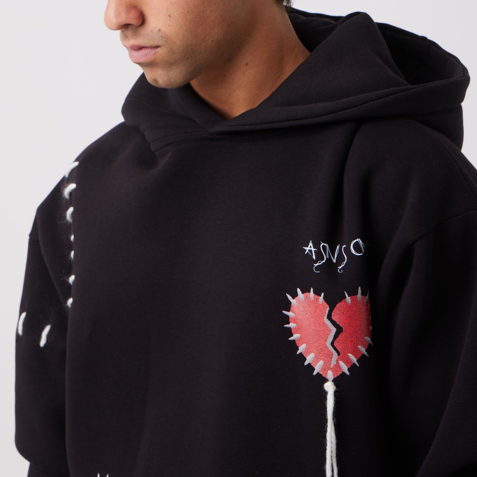 SEO: felpa nera uomo, felpa oversize con cappuccio, hoodie grafica cuore, streetwear premium, felpa Asensyo.