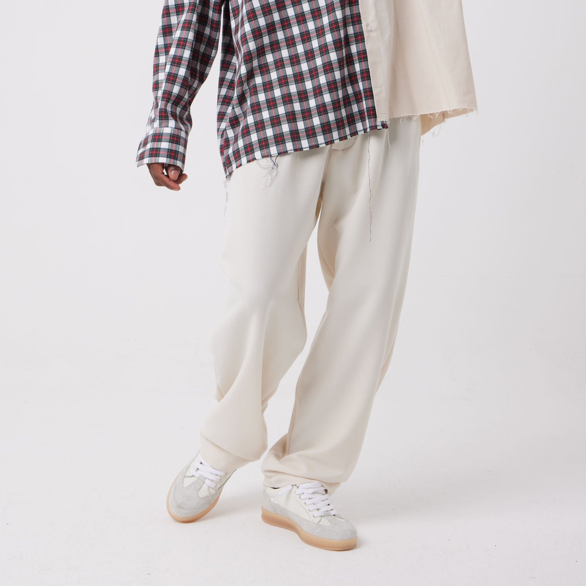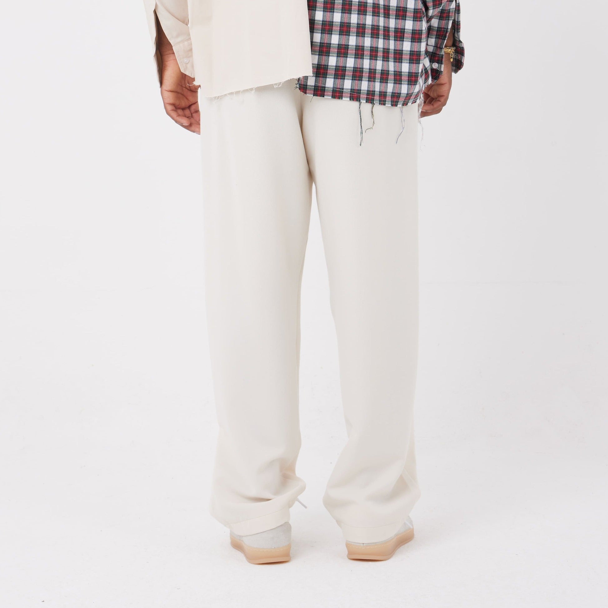 SEO: pantalone uomo gamba larga, pantalone wide leg nero, pantalone fluido avorio, trousers relaxed fit, Pantalone Asensyo.