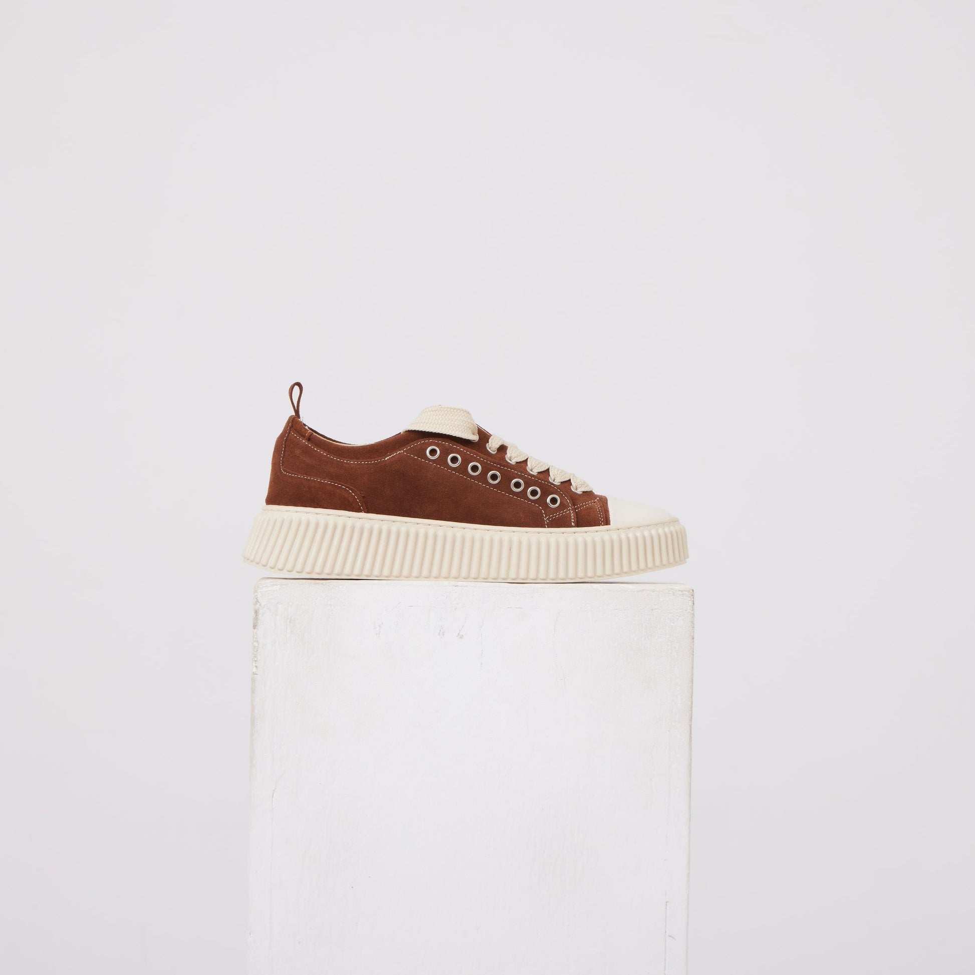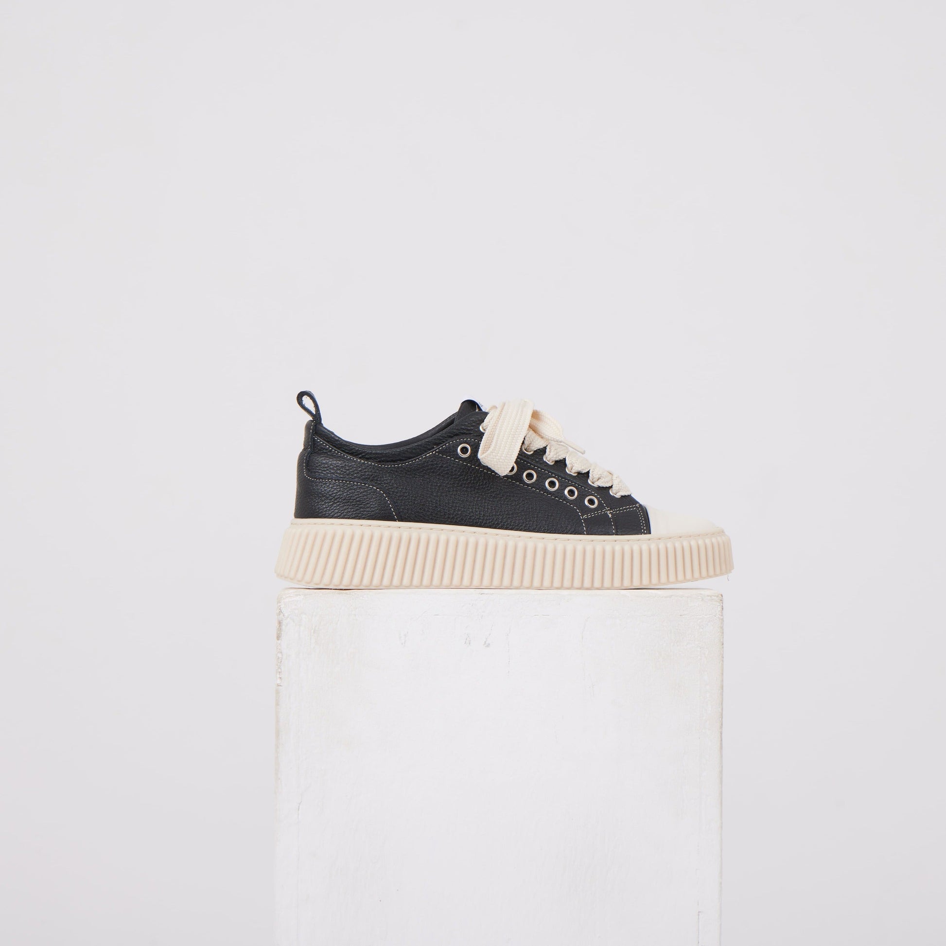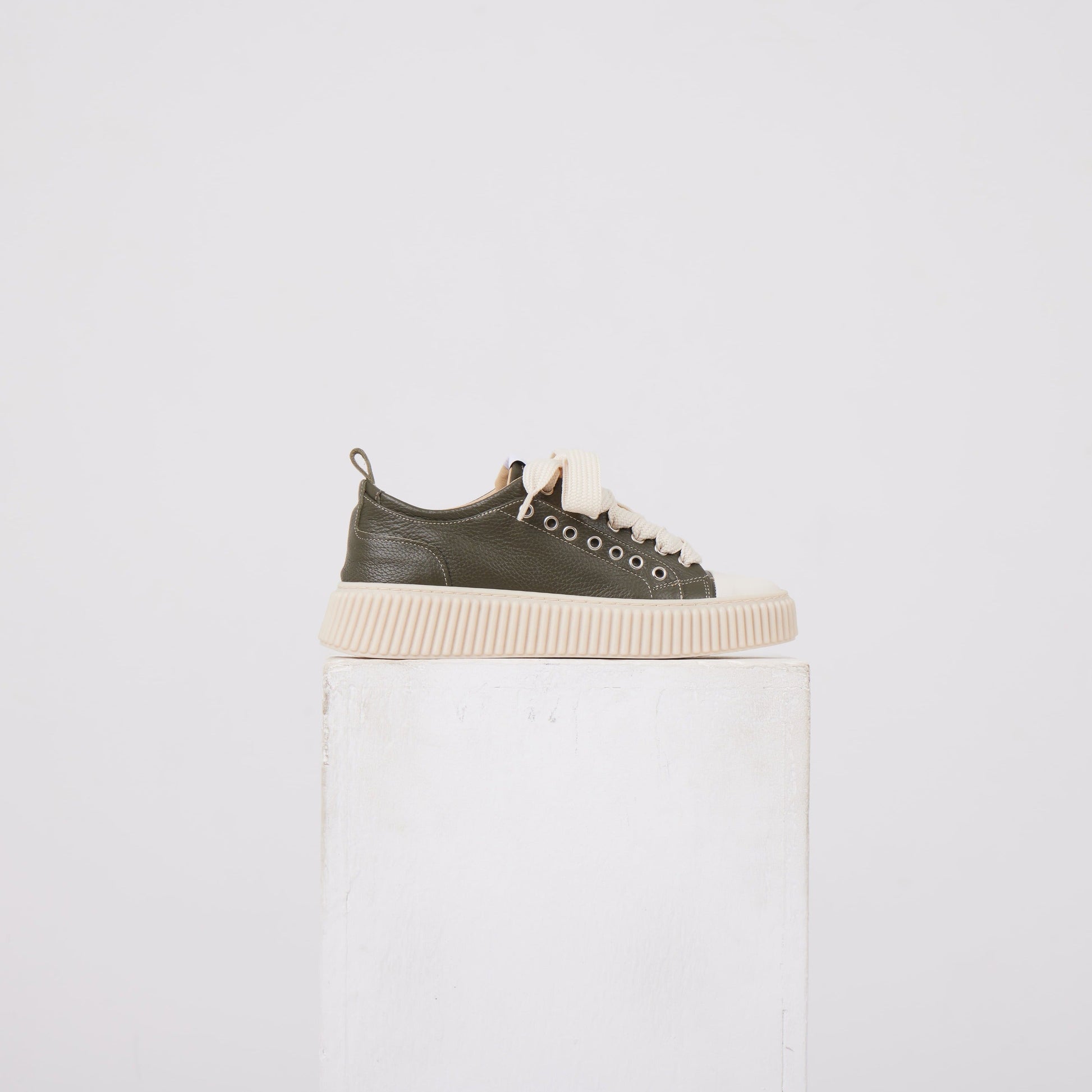 Un’interpretazione contemporanea delle sneaker basse, definita da proporzioni solide e materiali tattili. La suola scolpita aggiunge presenza e struttura, mentre la tomaia essenziale mantiene l’equilibrio visivo tipico di Asensyo: sobria, materica, funzionale.
