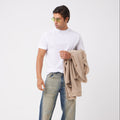 Scegli la tua taglia per un fit netto; una in più se la vuoi più morbida. Sta benissimo con denim vissuto o pantaloni ampi e sneakers pulite.