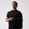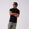 La tee essenziale che ripulisce il look. Collo mock leggermente alto, cuciture tecniche sulle spalle e linea pulita: minimal nell’estetica, precisa nella costruzione. Perfetta sotto blazer e overshirt, protagonista da sola.