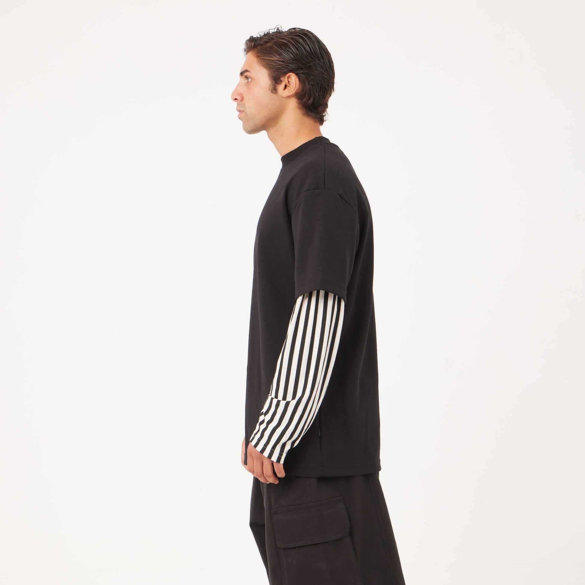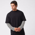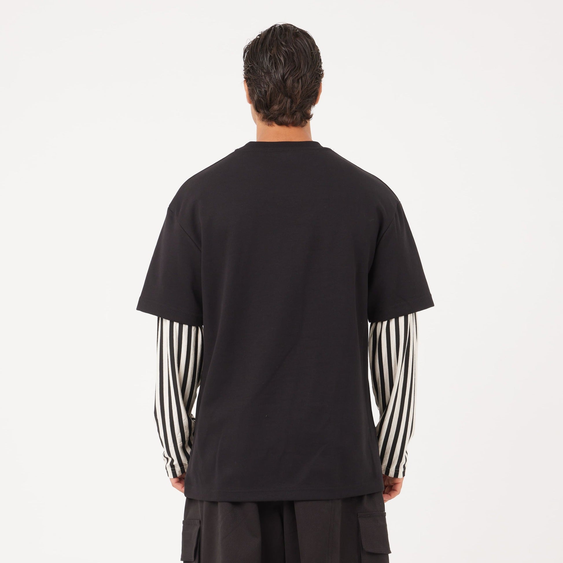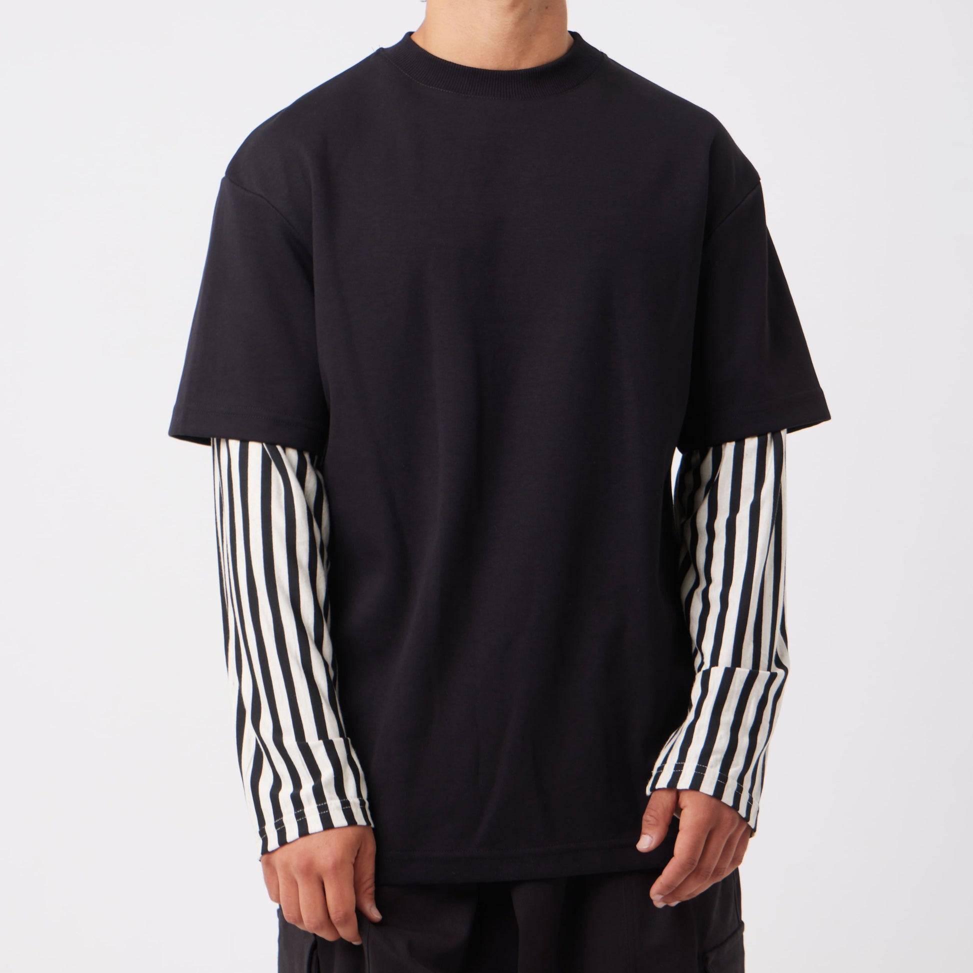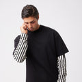 SEO: t-shirt layered uomo, maglietta con maniche a righe, t-shirt oversize streetwear, tee doppio effetto, T-shirt Asensyo.