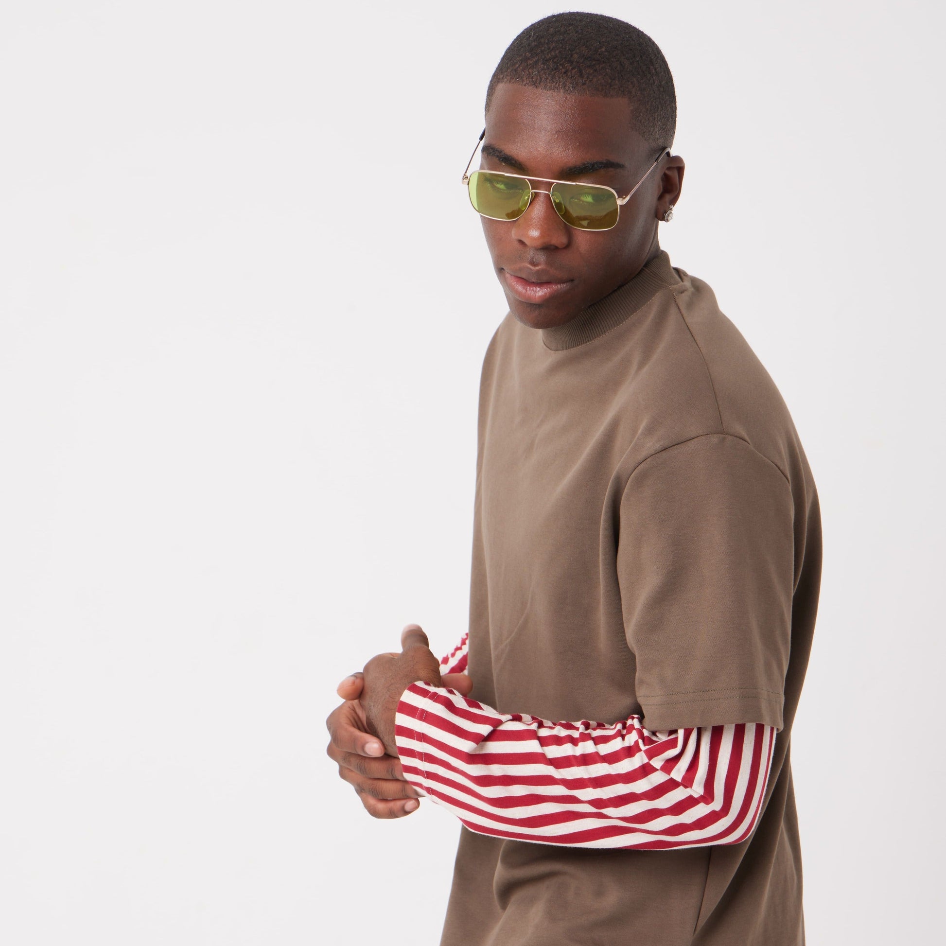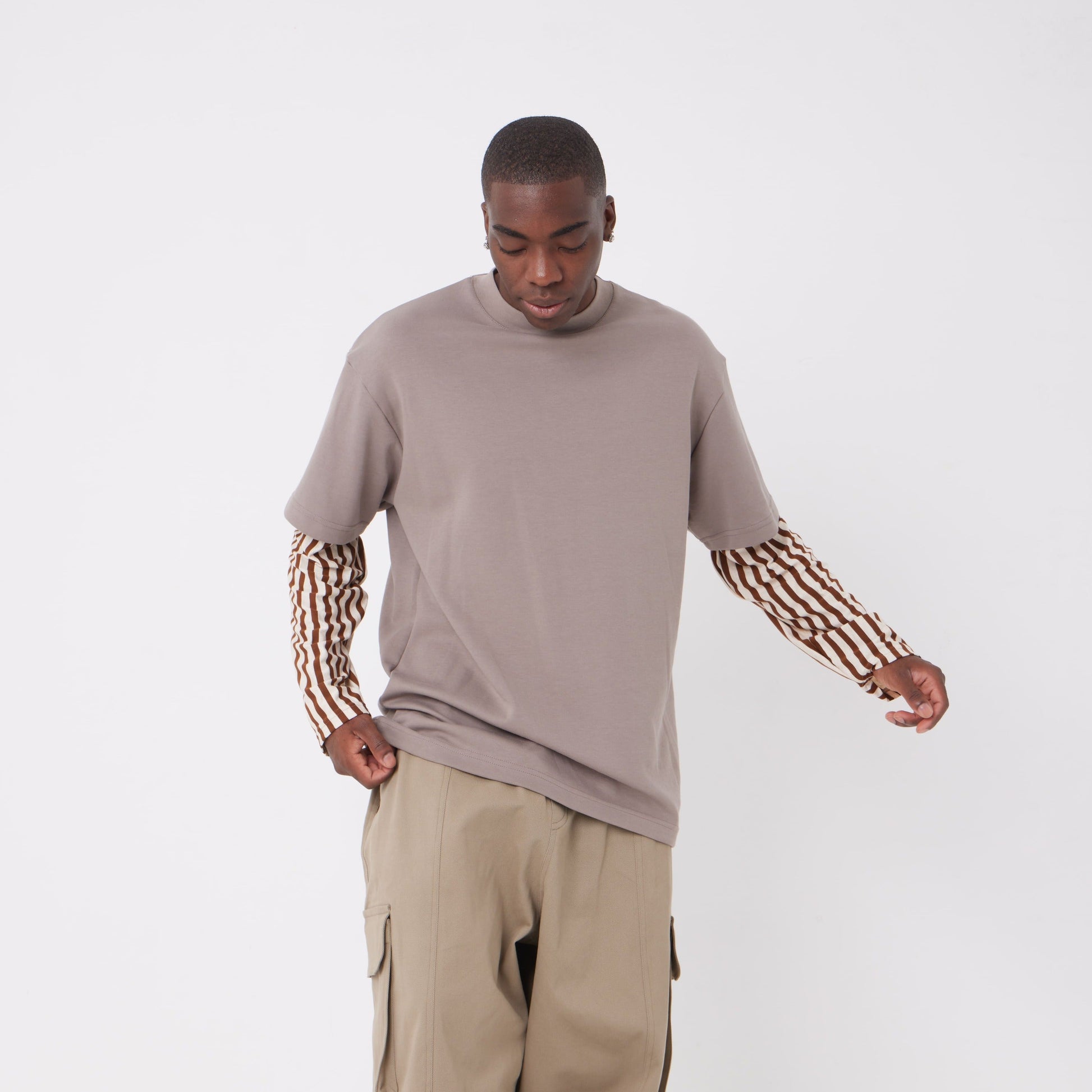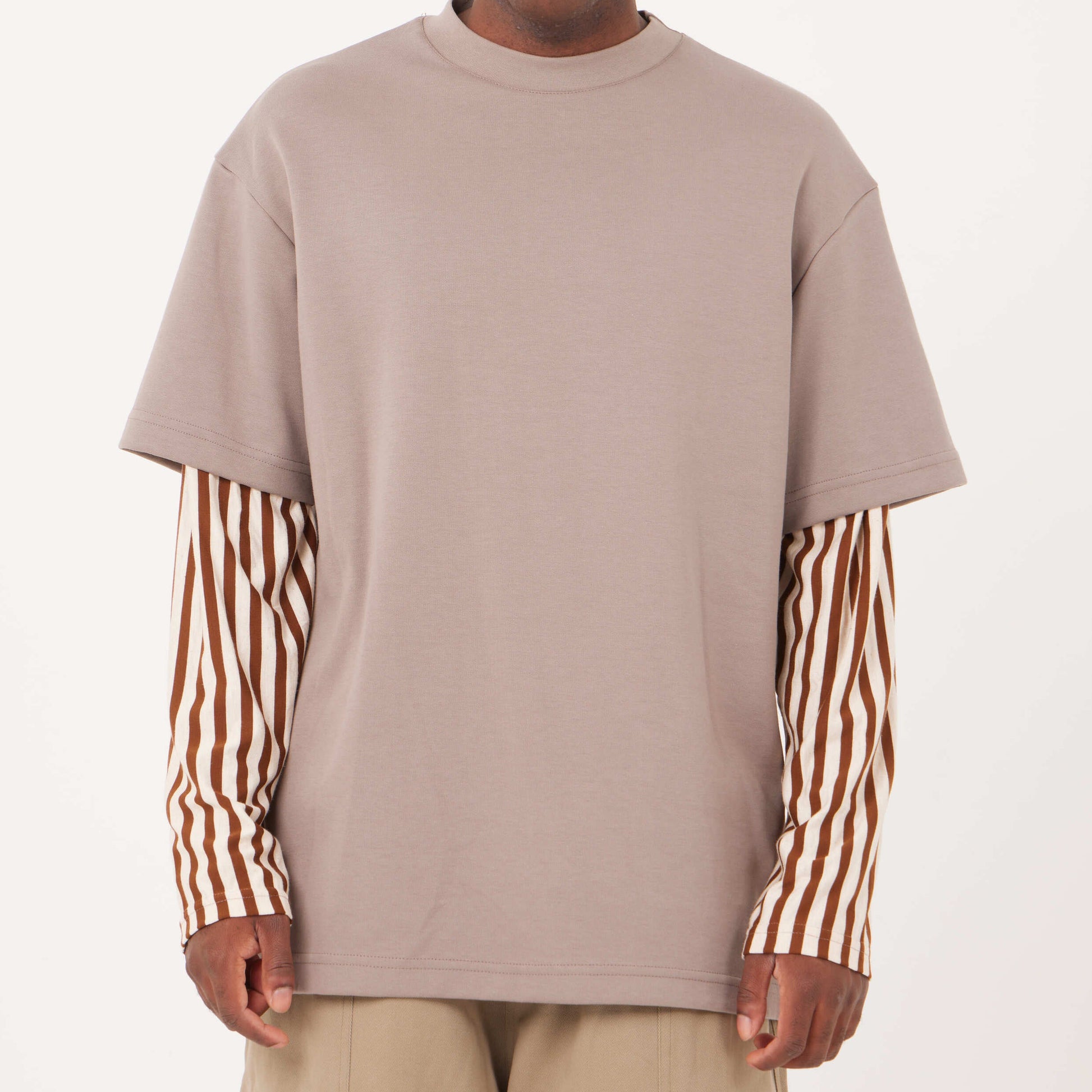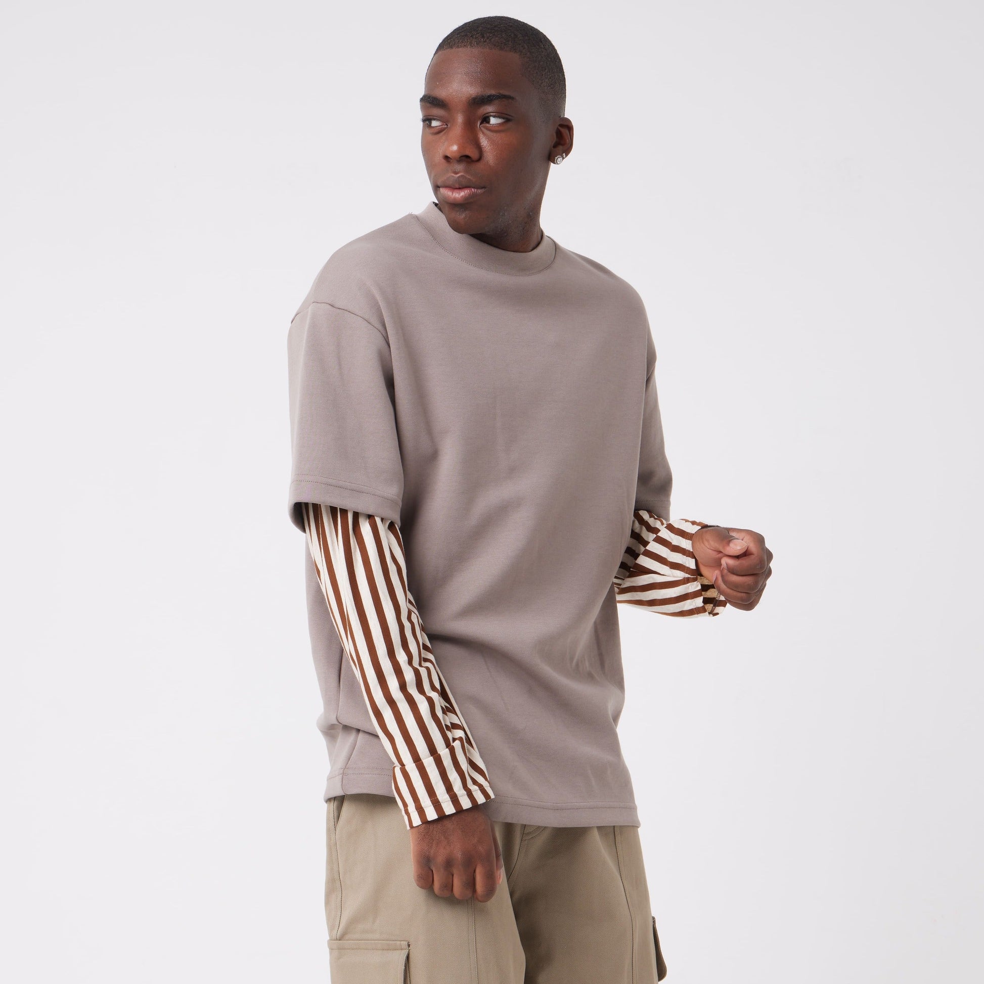 SEO: t-shirt layered uomo, maglietta con maniche a righe, t-shirt oversize streetwear, tee doppio effetto, T-shirt Asensyo.