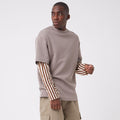 Una tee essenziale che sembra due capi in uno. Il corpo pulito e minimal accoglie sottomaniche a righe a contrasto per un effetto layering immediato: zero sforzo, massimo impatto. Volumi rilassati, spalle scese e collo a giro per una silhouette contemporanea che funziona 24/7.